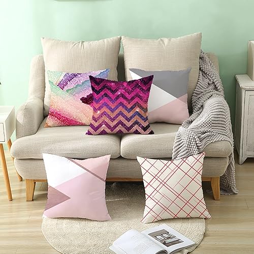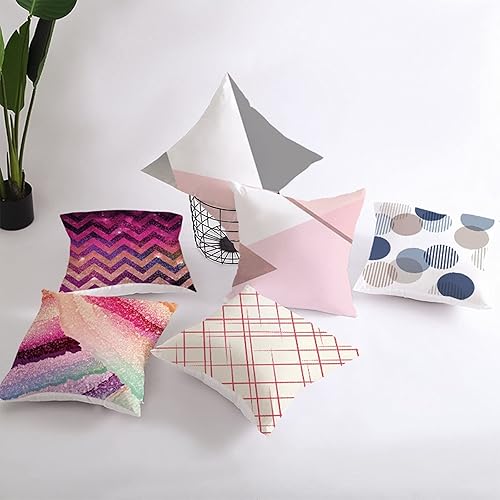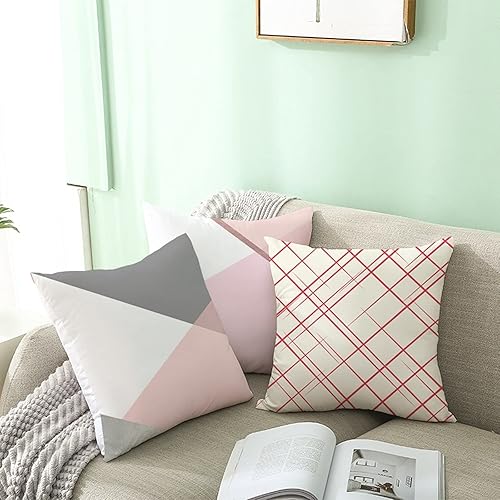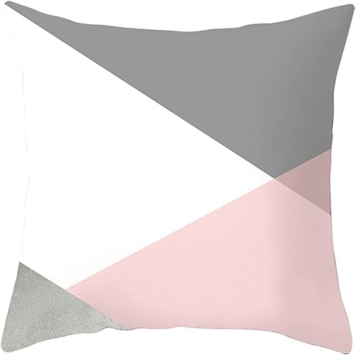 Daesar Coussins Decoratifs, Housse de Coussin 40x40 Blanc Gris Rose Coussin Deco Salon de Jardin Geometrique, Polyester