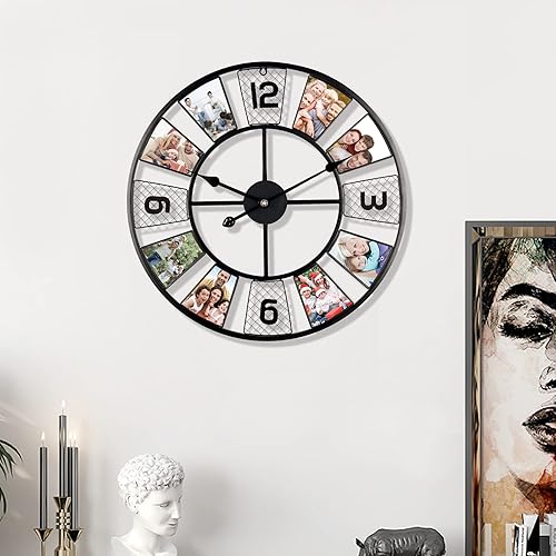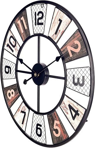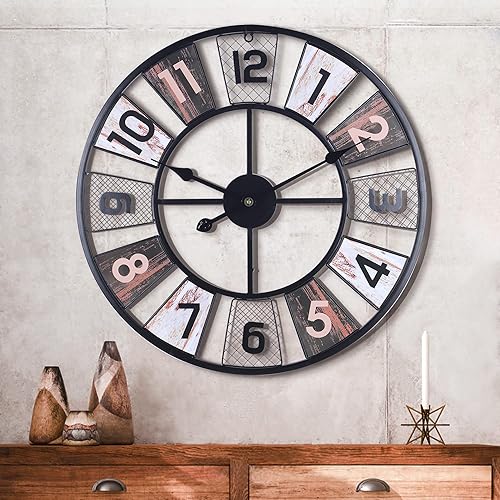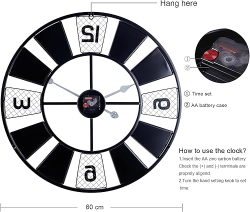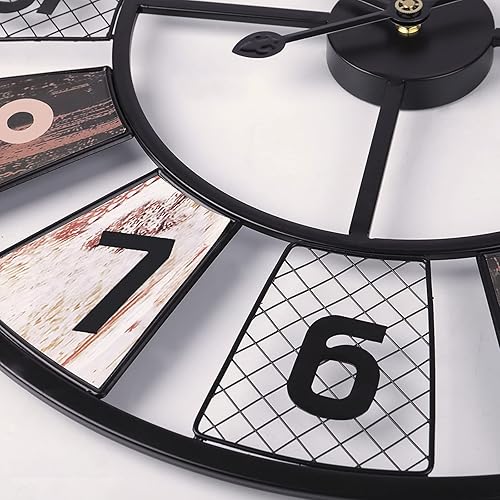 Lafocuse Horloge Murale Noir Geante Moulin à Vent 57cm Pendule Murale Quartz Métal Industrielle Silencieuse pour Salon Bar