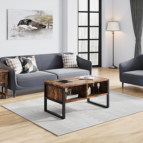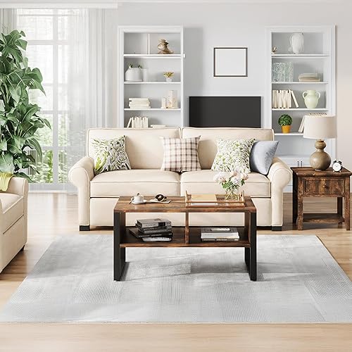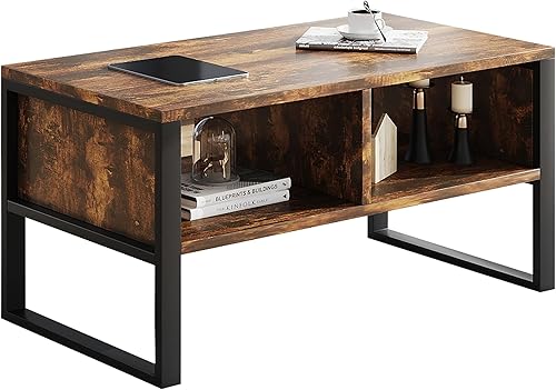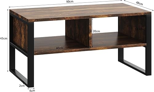 SHOWHA Table Basse,Buffet Bas avec 2 Compartiments de Rangement,Table de Salon en Bois de Haute Qualité et Structure en Métal,Marron Rustique et Noir,90 x 48 x 45 cm