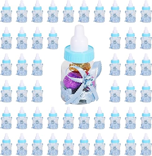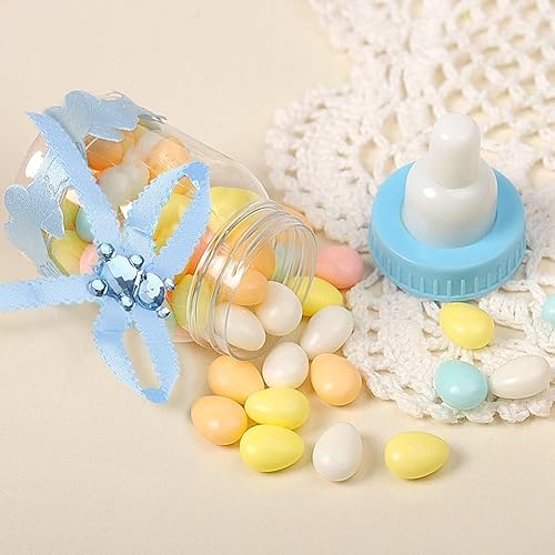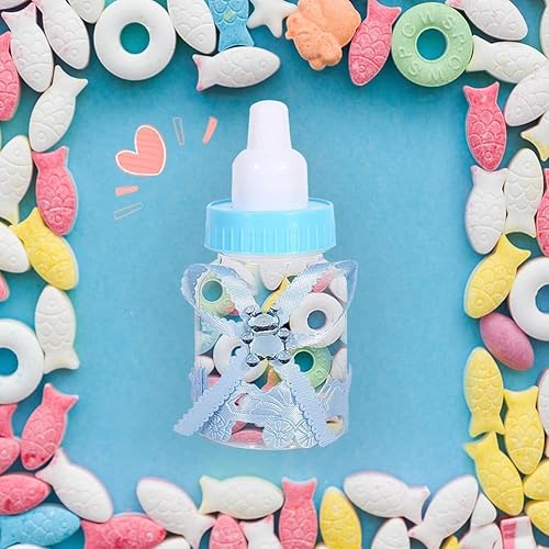 50Pcs Bonbons Bouteille Baby Shower, 2 Couleurs Bonbons Chocolat Bouteilles Boîte Baby Shower Party Favors Cadeaux Décorations avec Ours pour Fille Bébé Fête D'anniversaire Décoration(Bleu)