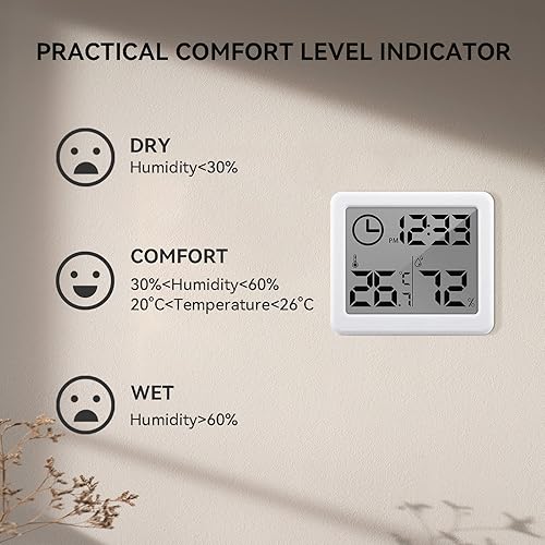 Alfresco Termometro Digitale - Termometro per ambienti interni con monitor di umidità, termometro da tavolo o da appendere a parete per la camera del bambino, il soggiorno, l'ufficio - Bianco