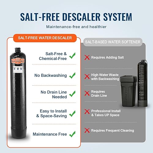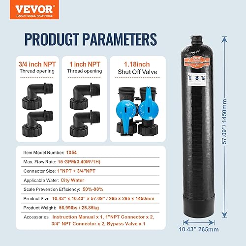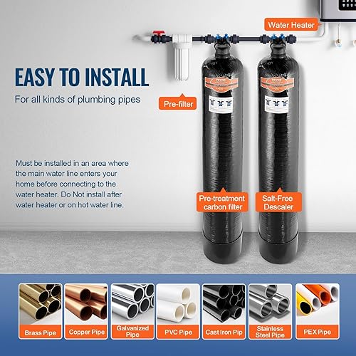 VEVOR Adoucisseur d’Eau sans Sel pour Toute la Maison 5-8 Personnes, Système de Détartrage pour l'Eau de Ville, Détartreur Capacité 42000 Tonnes, 1' BSPT et 3/4' BSPT, pour Tous les Types de Tuyaux