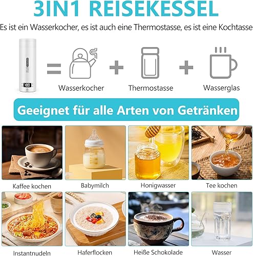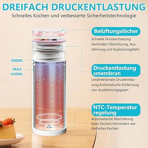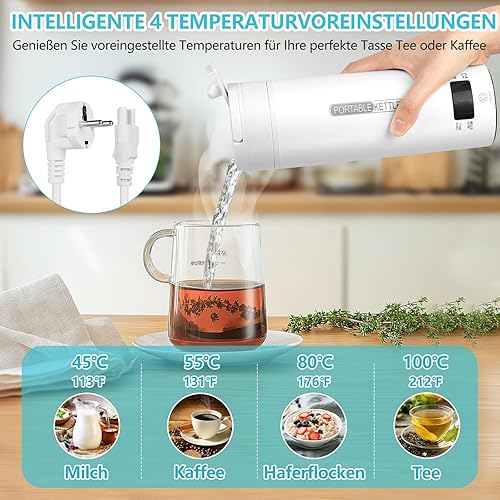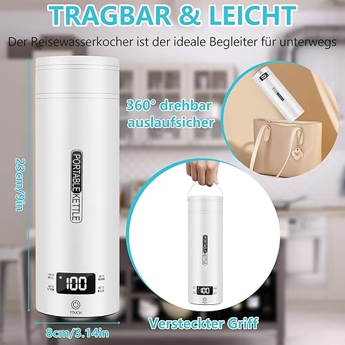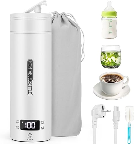 GuKKK Petite bouilloire de voyage électrique portable 500 ml en acier inoxydable 316 avec réglage de la température, arrêt automatique pour lait de bébé, thé, café, camping