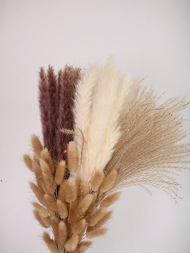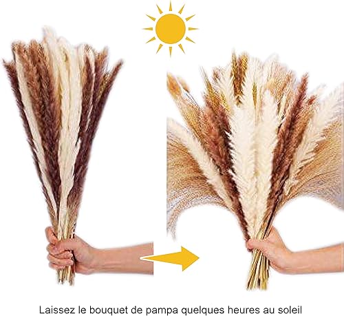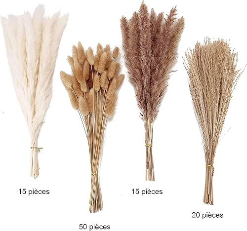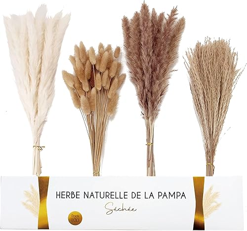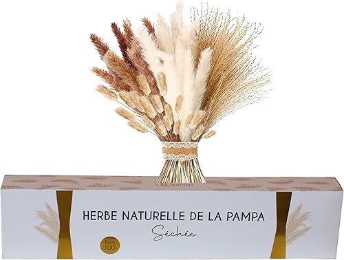 Bouquet Fleurs séchées, lot 100 Pampa Naturelle, 45cm, Herbe séchée de Pampa, plumeau décoratif, déco Salon