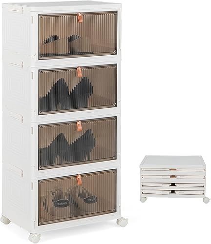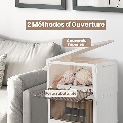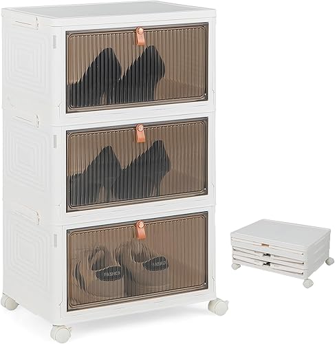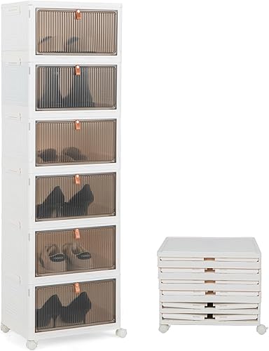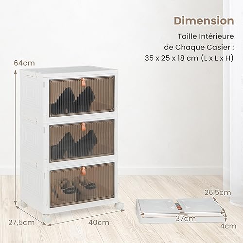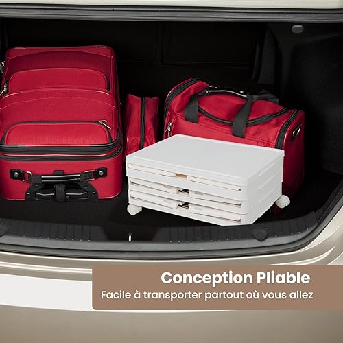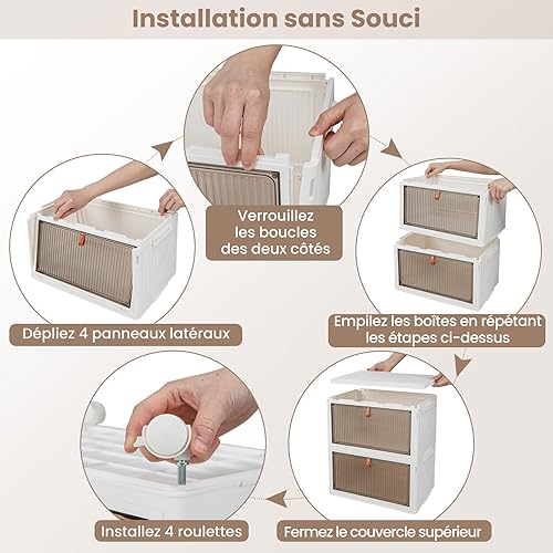 COSTWAY Boîte Rangement Plastique 90L, 6 Caisses de Rangement Pliables avec 4 Roulettes et Couvercles, Boite Empilable pour Chaussures, Jouets, Caisse pour Chambre, Salon, Cuisine (90L)