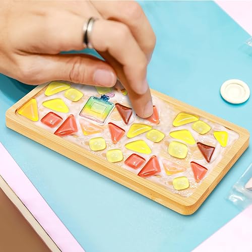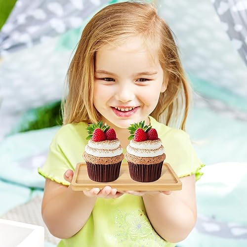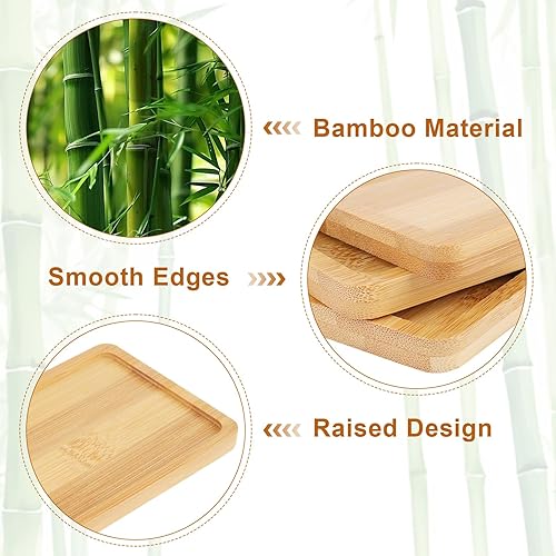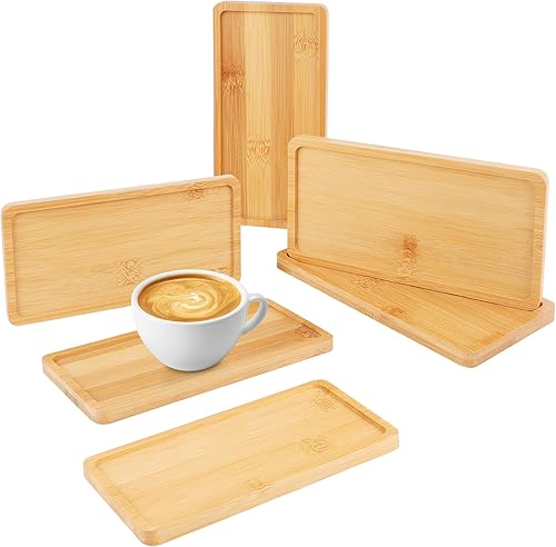 QMLING Lot de 6 plateaux rectangulaires en bambou - Petit plateau en bambou - Pour café, thé, gâteau - Mosaïque - 17,7 x 8,9 x 0,9 cm