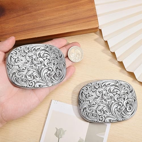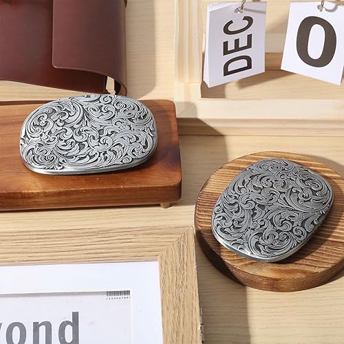 CHGCRAFT boucle de Ceinture Ovale en Alliage Gravé Motif Floral Antique Style Cowboy Occidental pour Décoration Argent