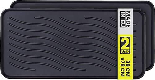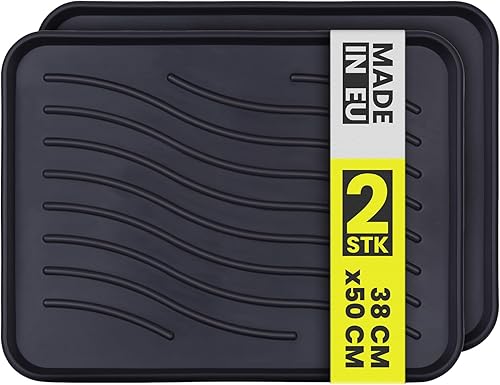 Bestlivings Lot de 2 bacs à chaussures (38 x 38 x 2,5 cm) - Avec bord haut - Tapis d'égouttement - Tapis de chaussures pour la maison et le jardin - Imperméable