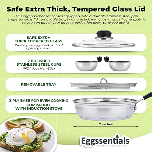 Eggssentials Pocheuse à œufs avec revêtement anti-adhésif – Poêle à œufs pochés en acier inoxydable sans PFOA avec spatule, machine à œufs pochés, ustensile de cuisine
