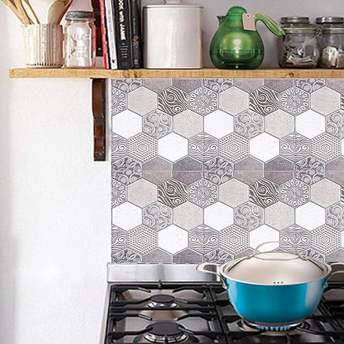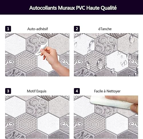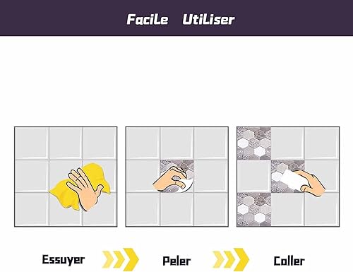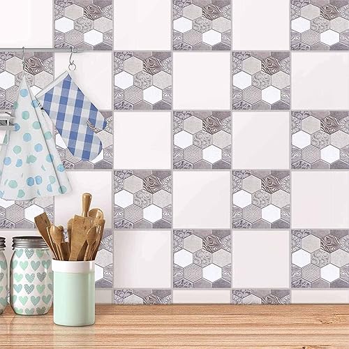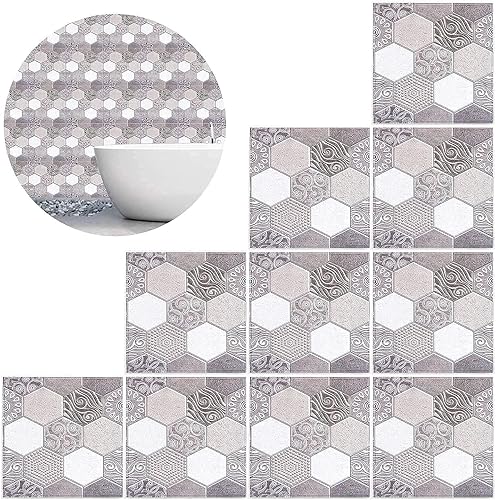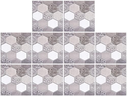 Tissting 10 Pièces Autocollants de Carreaux, 30x30cm Auto-adhésif de Carrelage Mural Sticker Carrelage decoration stickers Salle de Bain pour de Bain et Cuisine