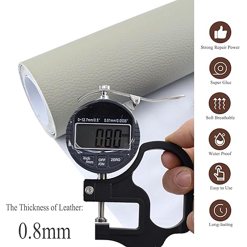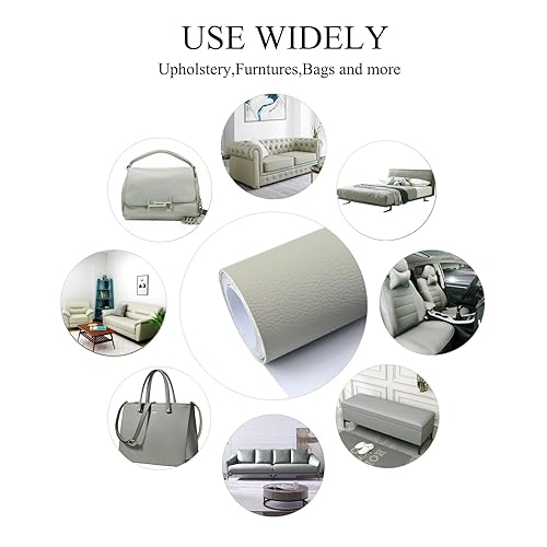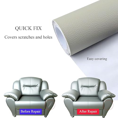DIKARIYA Patch de Réparation en Cuir, Simili Cuir Autocollant,Patch Cuir Auto-adhésif Rénovation,Kit Reparation Cuir pour Canapés/Sièges de Voiture/Meubles/Vestes Gris Clair 40x150CM