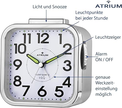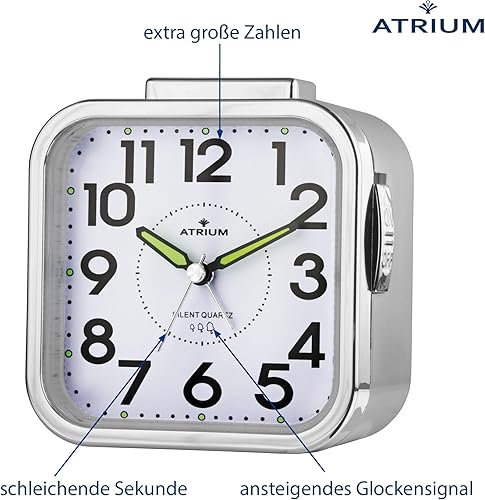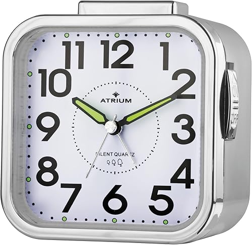 Atrium – Réveil analogique à quartz – A530-19 – Sans tic-tac – Alarme puissante – Grands chiffres – Argenté