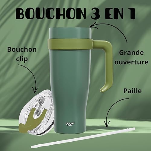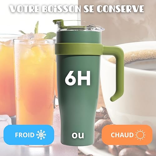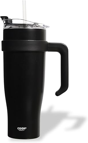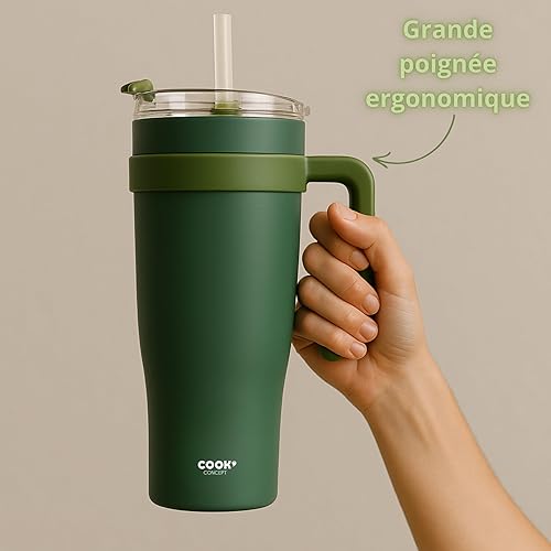 PRO DISTRI Mug Isotherme avec Paille et Poignée Ergonomique | Gourde XXL en Inox pour conserver vos boissons au chaud ou au frais | Idéal pour le Bureau ou le Sport | Coloris Noir Intense