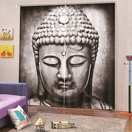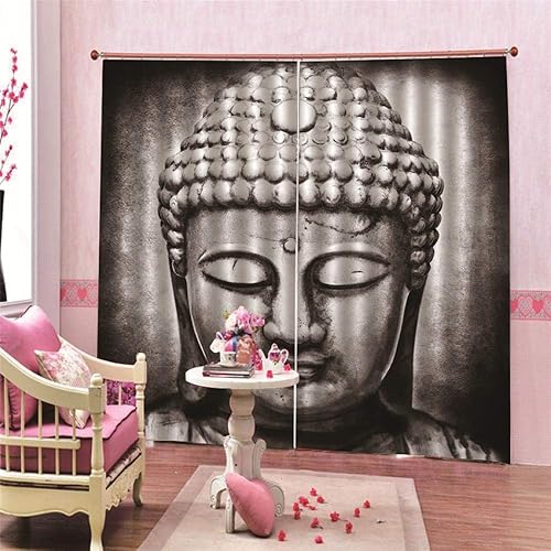 BSZHCT Rideaux Occultants - Statue de Bouddha rétro 220X215CM Impression 3D Rideaux 100% Polyester pour Chambres À Minimaliste Moderne Chambre d'enfant Décoration de la fenêtre