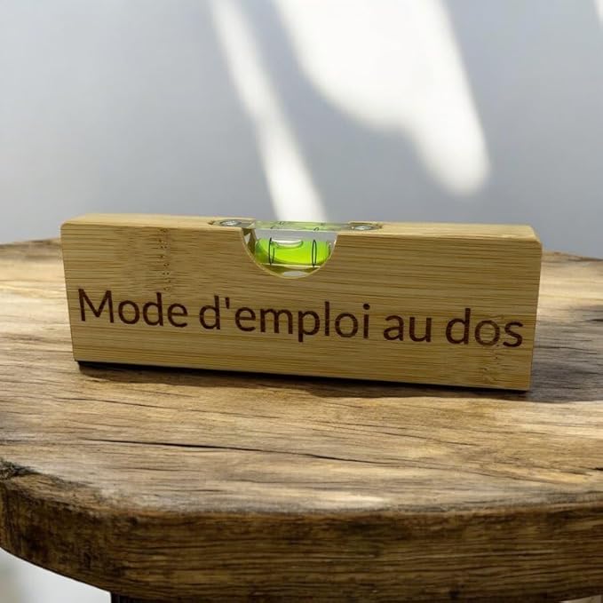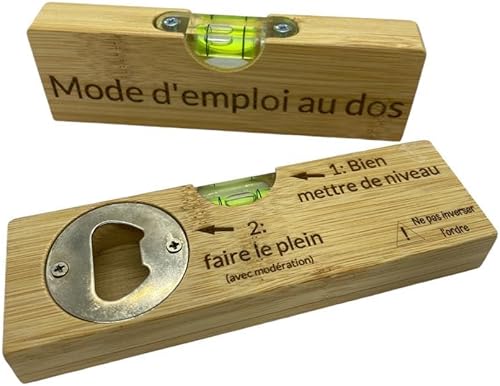 Niveau à bulle, décapsuleur en bambou gravé 'Mode d'emploi au dos', 15x4,5cm, idée cadeau homme, cadeau noël, cadeau fête, cadeau anniversaire, bricoleur, bricolage, humour