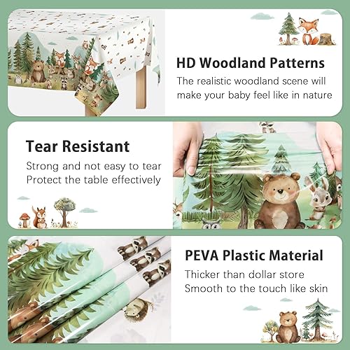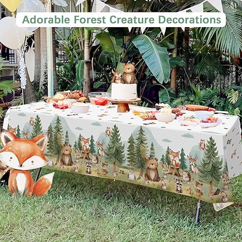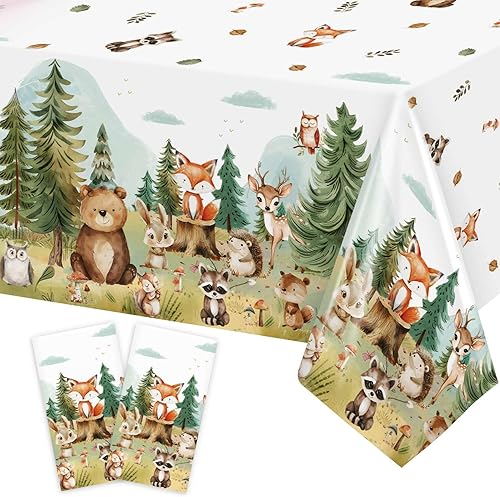 Heboland Animaux de la Forêt Anniversaire Décoration de Table, 2 pièces Nappe Anniversaire Enfant en PEVA pour Décoration d'anniversaire Garçon et Fille, 137 x 274cm
