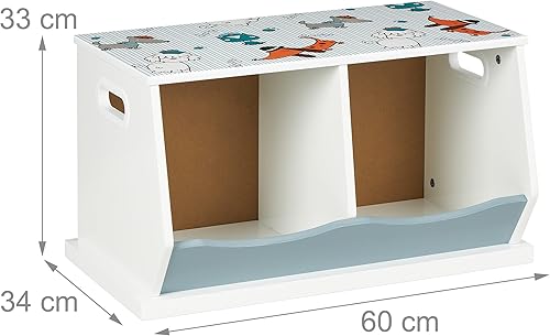Relaxdays Étagère pour Enfants, Motif Chiens, 2 Compartiments, HxLxP : 33x60x34 cm, MDF, Rangement Chambre, Multicolore