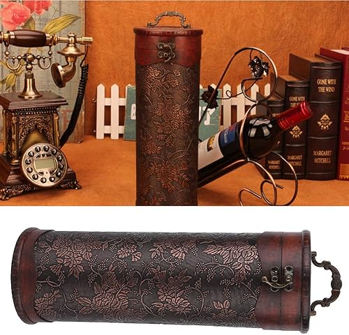 Tomotato Boîte de Rangement de Vin, Boîte de Vin Rouge en Bois Boîte de Rangement de Vin Rouge Simple Ronde avec Poignée Boîte d'emballage de Vin pour la Décoration de la Maison
