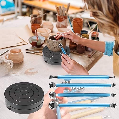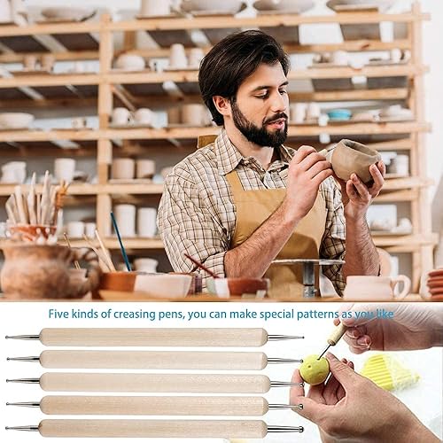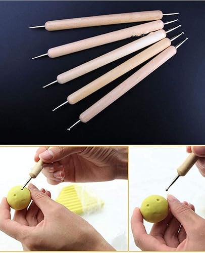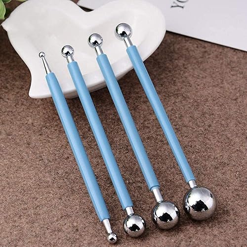 BOBOZHONG Outils en Argile Polymère,Outils de modelage,Outils de Pointillage,Outil de Poterie,4 PCS Outils de pointage de Stylet à Bille +5 PCS Outil de gaufrage spour la modélisation
