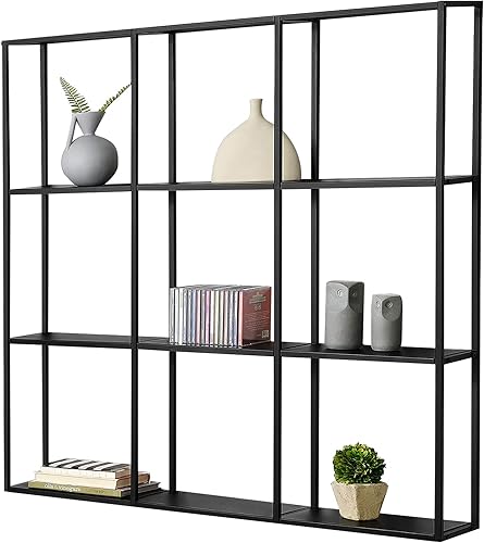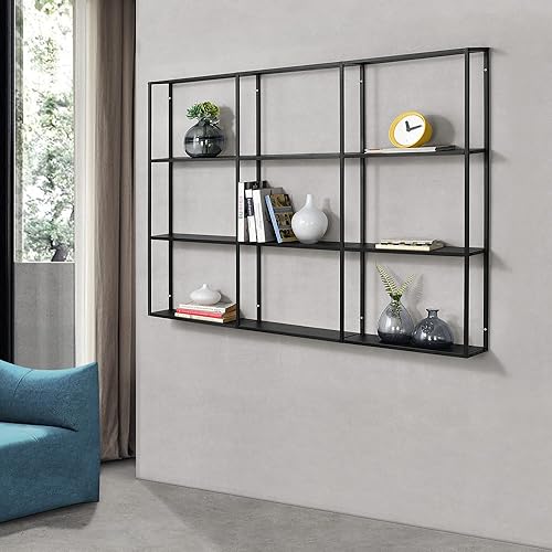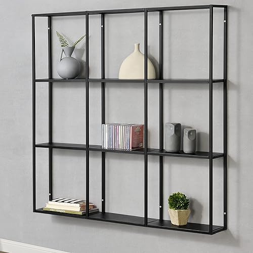 Étagère Murale Design à 9 Surfaces de Stockage Meuble de Rangement en Fer Capacité de Charge 5 kg par Tablette 100 x 18 x 110 cm Noir