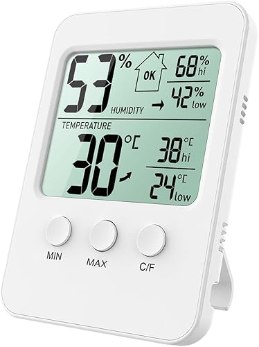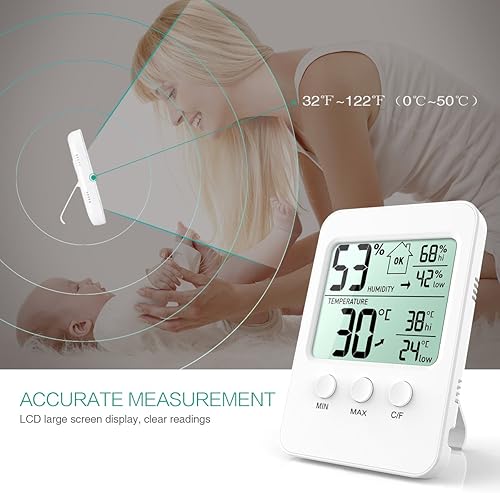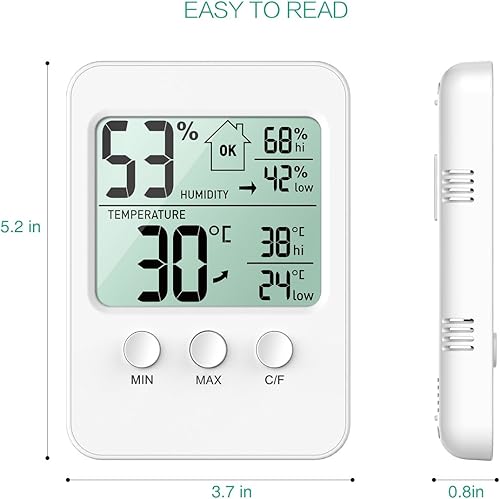 ORIA Thermomètre Hygromètre Digital Interieur, Température Intérieure Humidité Mètre, Moniteur Home Comfort avec Min/Max Records, Grand Écran LCD, ℃/℉ Change, Support/Magnétique/Suspension