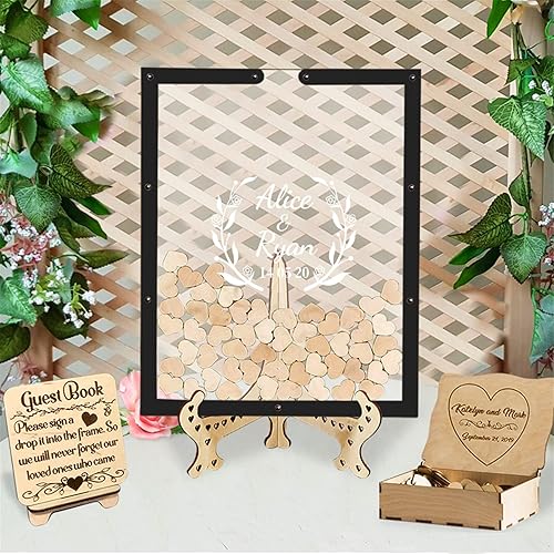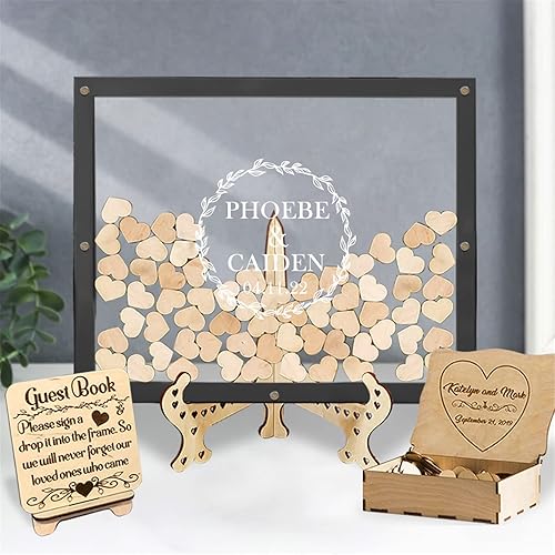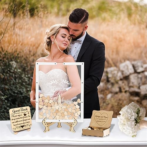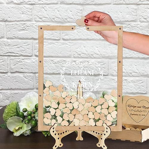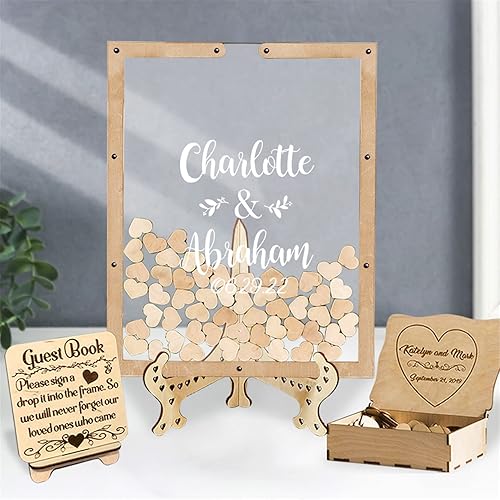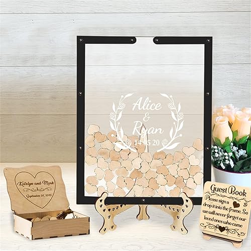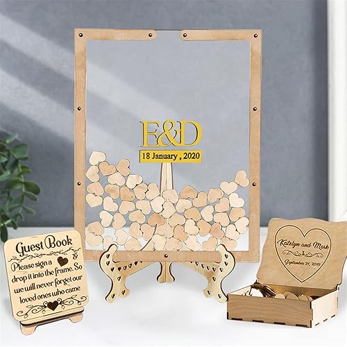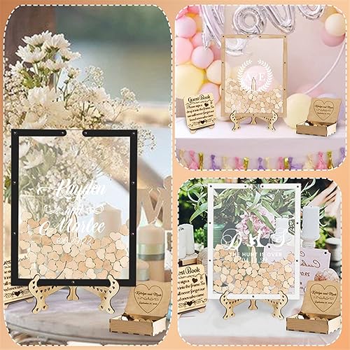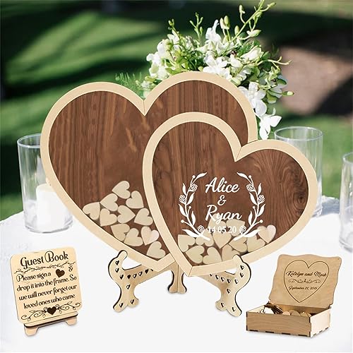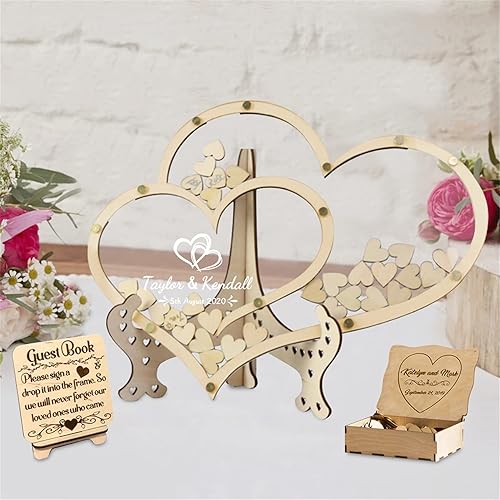 Smallduuck Livre d'or personnalisé avec Coeur Alternative avec 30-100 Coeurs Bois Mariage Drop Box Signes Livre d'or Rustique Mariage Décoration,Livre d'or du Coeur-Style 3