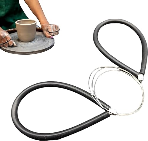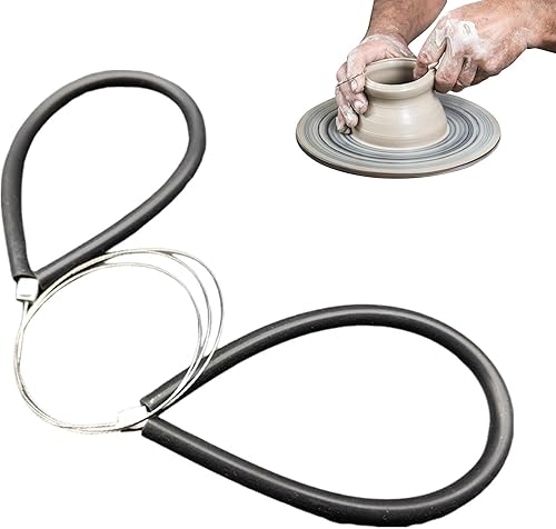 Outils de boue poterie - Coupe-argile en acier inoxydable avec 2 poignées en caoutchouc - Outils de coupe pour disque de poterie - Outils de coupe multifonctions confortables pour débutants, avancés