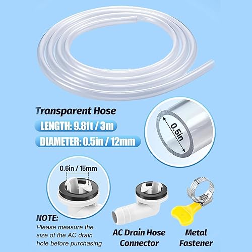Tuyau de vidange AC - Tuyau de vidange pour climatisation portable - Kit étanche avec raccord de tuyau et pince - Pièces de climatisation idéales pour le remplacement et l'entretien