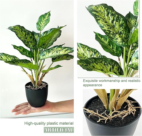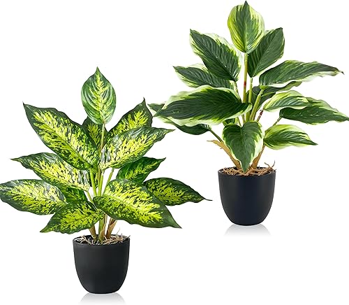 SHEPIN Lot de 2 plantes artificielles en pot - 37 cm - Plantes décoratives en plastique - Pour salle de bain, bureau, cuisine, salle de bain (A)