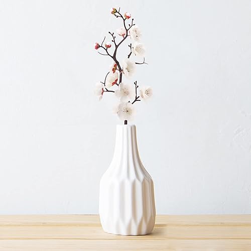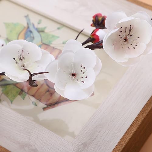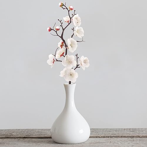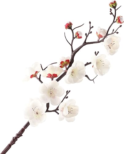 SUREH Lot de 5 fleurs de prunier artificielles blanches à longues tiges en plastique - Simulation de fleurs de cerisier - Fleurs artificielles en soie - Fleurs de pêche florales pour mariage,