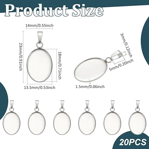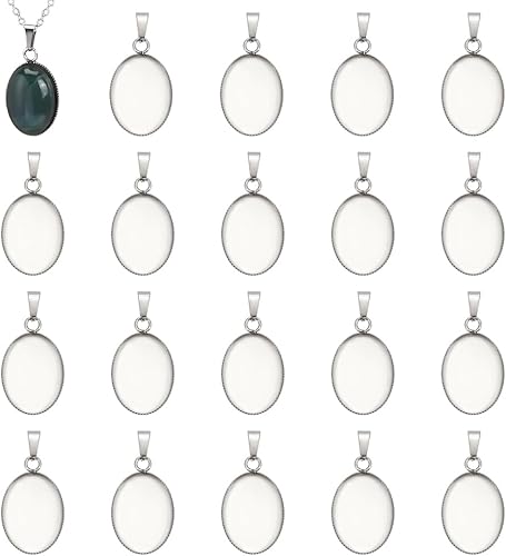 UNICRAFTALE 20 pièces 13.5x18mm Pendentif Ovale Cabochon Paramètres 304 en Acier Inoxydable Bord Fraisé Lunette Tasses Ovale Plateau Pendentifs Cabochon pour la Fabrication de Bijoux, Trou 3x5mm