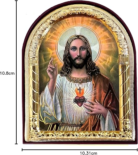 Icône sacrée en forme de cœur de Jésus en forme d'arche, icône en feuille d'or de Jésus Christ, avec support et il est suspendu au mur de 10,4 cm, icône catholique