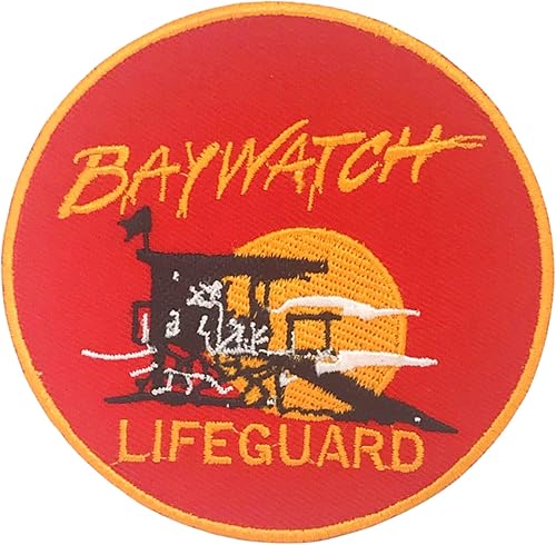 GK - Écusson brodé thermocollant Baywatch Lifeguard - Rouge - Ronde - Patch - 8.8 cm - Fil - Détailé et Intricat - Thème Baywatch Style Rouge