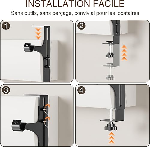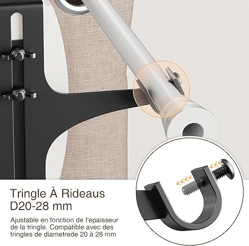 Support tringle rideaux sans perçage coffre volet roulant, accroche rideau sans perçage, porte-rideaux sans perçage – Pour tringles de Ø20 à 28 mm – En métal, blanc, lot de 2