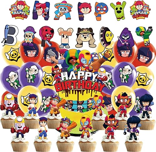 Brwl Str Lot de 44 décorations d'anniversaire, de fête, pour enfants, avec guirlande de ballons, parfait pour les fêtes d'anniversaire d'enfants, pour garçons et filles