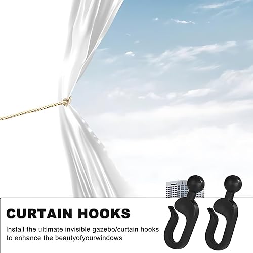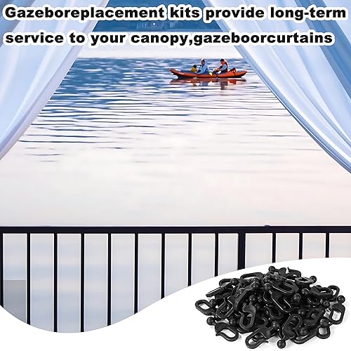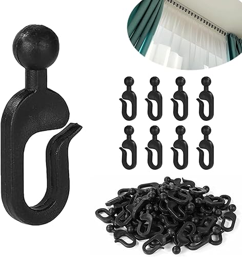 50 Pièces Crochets Rideaux Pergola, 42.5x15mm Noir Plastique Antirouille à Glissement Fluide, Rideau Pour Pergola avec Anneaux Invisibles - Accessoires D'extérieur Résistants au Vent pour Moustiquaire