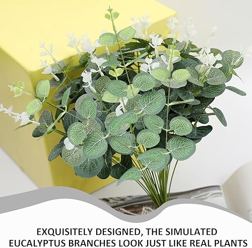 20 morceaux de branches d'eucalyptus, décoration d'eucalyptus artificiel, arrangement floral de branches, eucalyptus simulé, accessoires de jeu, adaptés aux mariages, aux jardins et aux maisons