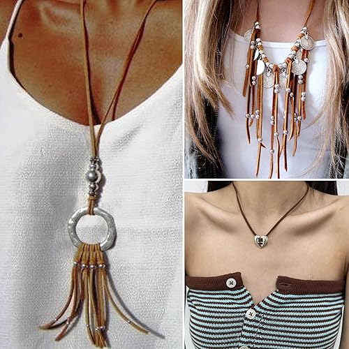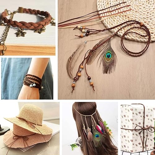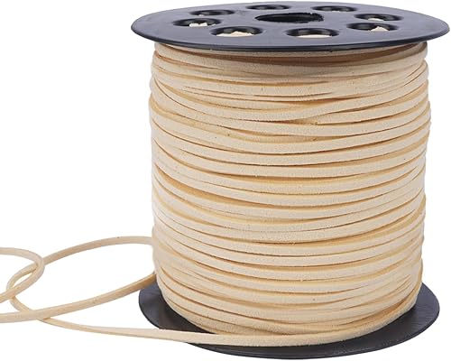 Luabue Cordon en Cuir Synthétique 2mm x 90m - Ficelle pour Collier, Bracelet, Bricolage et Artisanat (Beige)