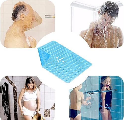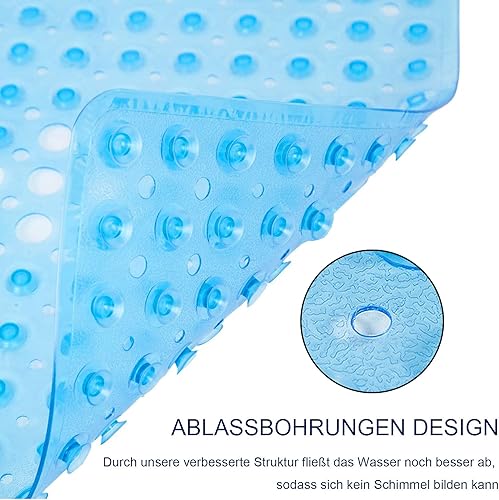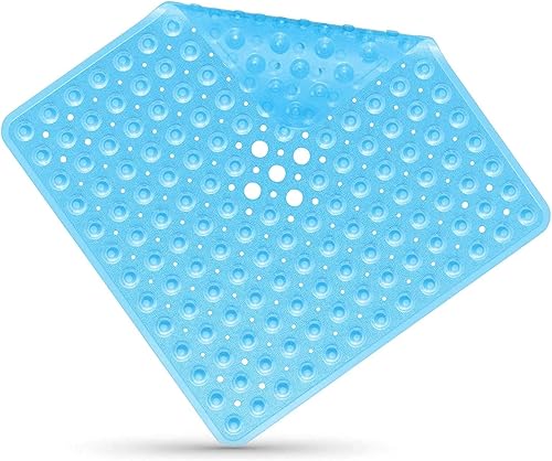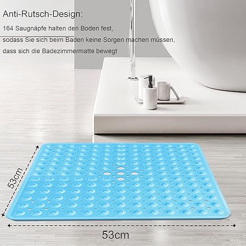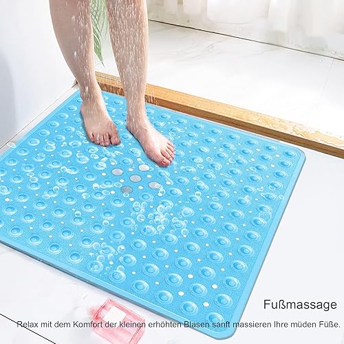 easyBee Tapis de Bain Antidérapant Carré, Tapis de Douche Ventouse sans BPA, Tapis Baignoire avec Fonction Massage des Pieds, Shower Mat Résistant aux Moisissures Lavable, 53×53cm - Bleu