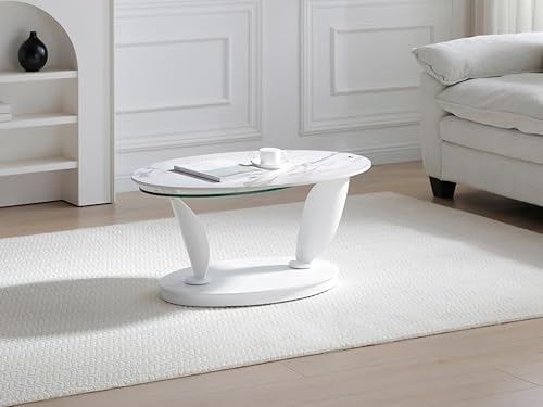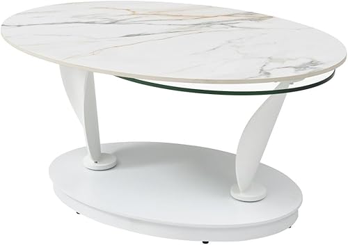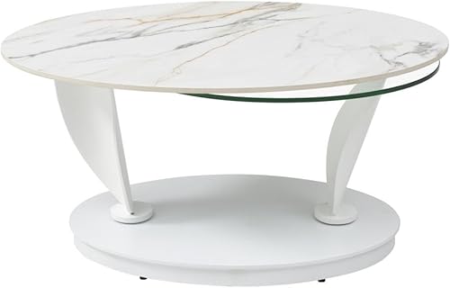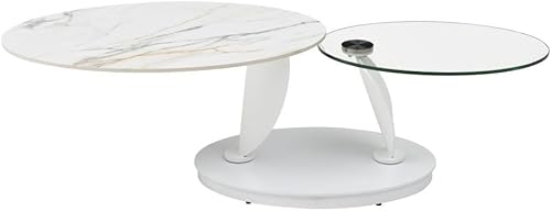 Vente-unique - Table Basse avec Plateaux pivotants en céramique, Verre trempé et métal - Effet marbre Blanc - MANEYA de Maison Céphy