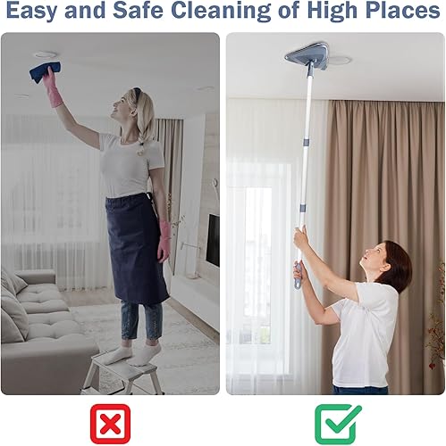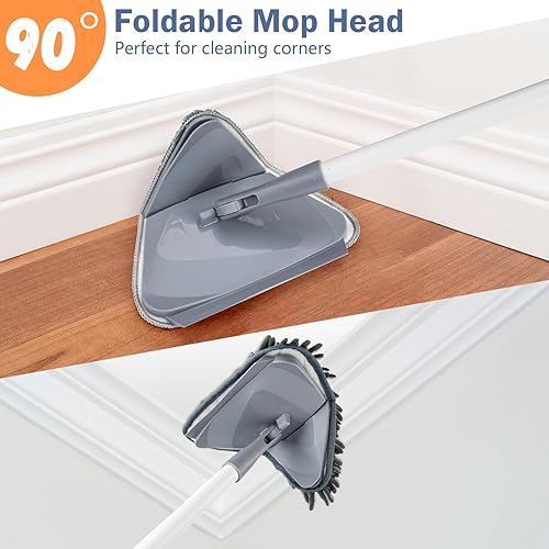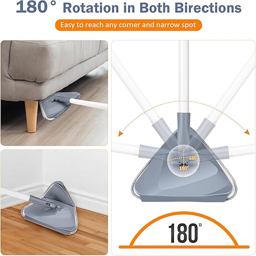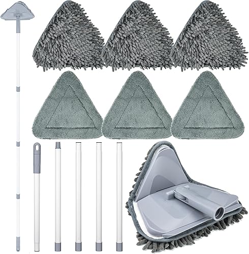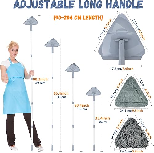 Onlyesh Triangle Rotatif à 360° Réglable Vadrouille de Nettoyage, avec 6 Chiffons de Remplacement, avec Tige Télescopique Balai Rotatif, Balai pour Nettoyer Les Murs, Plafond, Sol