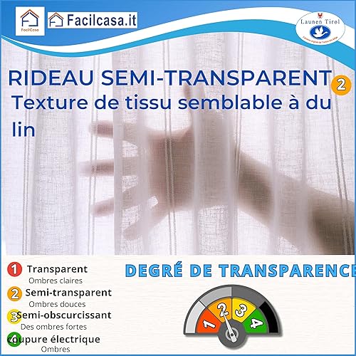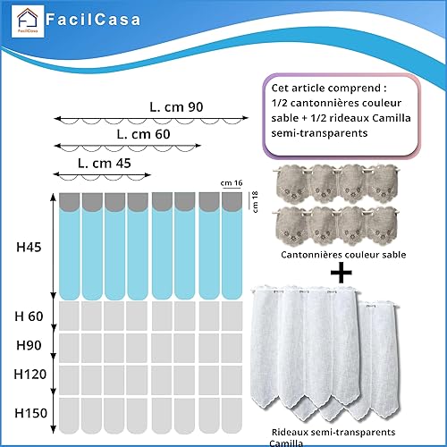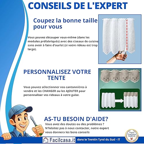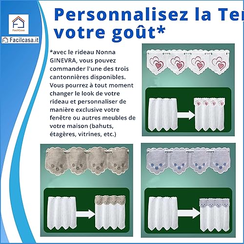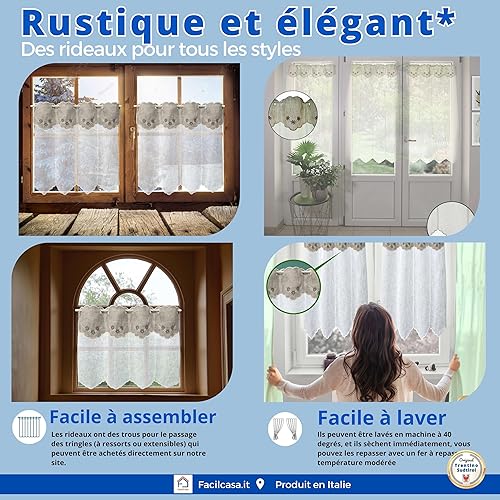 FacilCasa Rideau de fenêtre, Rideau de fenêtre en Verre, Rideau d'intérieur, Roman de Grand-mère, pour la Cuisine, Le Salon, la Chambre à Coucher (2 Rideaux avec CANTONIER, 2X H120 x 45)