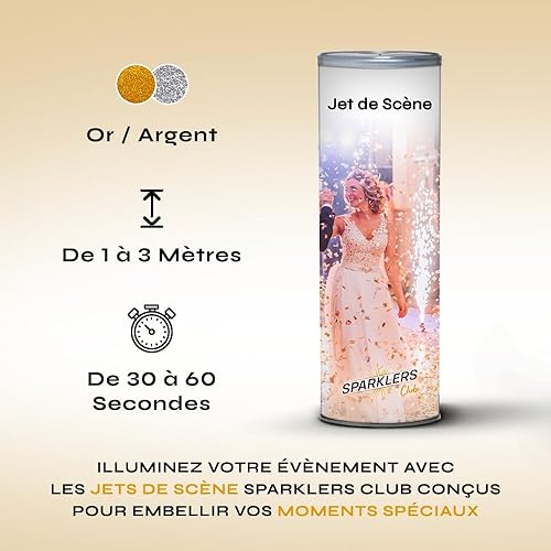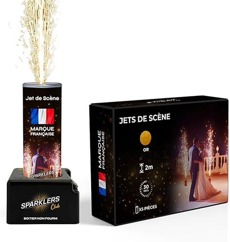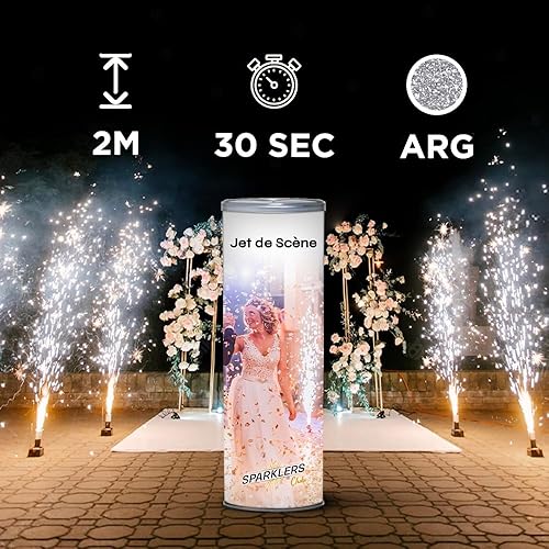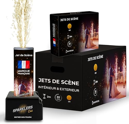 SPARKLERS CLUB Jet de Scène à Étincelles 2 Mètres 30 Secondes pour Intérieur et Extérieur - Couleur Or ou Argent - Idéal Mariage, Soirée, Anniversaire - Pack Artifice Catégorie F1 (Or / 25 Jets)