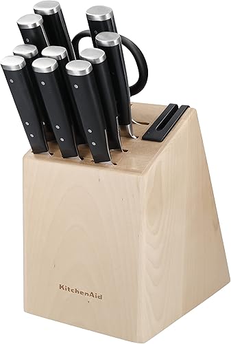 Kitchenaid Gourmet ensemble de Couteaux en Acier Japonais, 11 Pièces avec Aiguisoir et Bloc en Bois de Bouleau