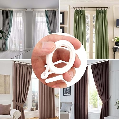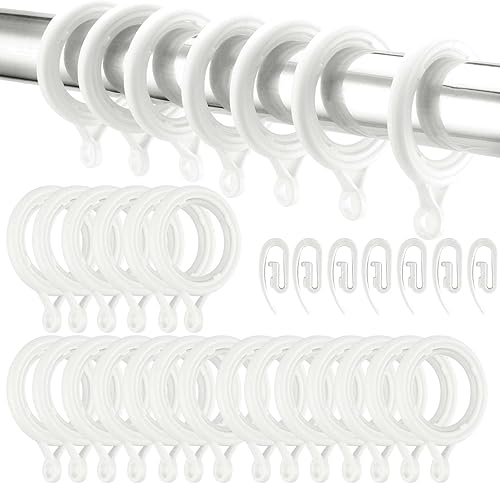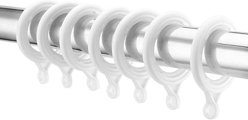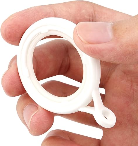 SEUNMUK Lot de 50 anneaux et crochets de rideaux blancs en plastique de 28 mm pour accrocher des fenêtres et des rideaux de douche