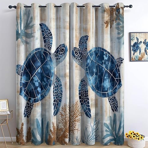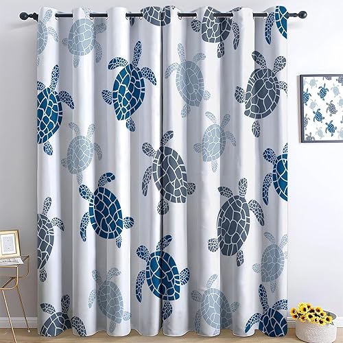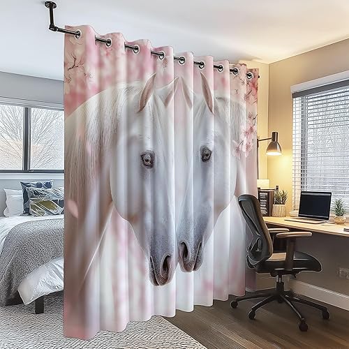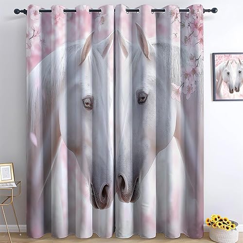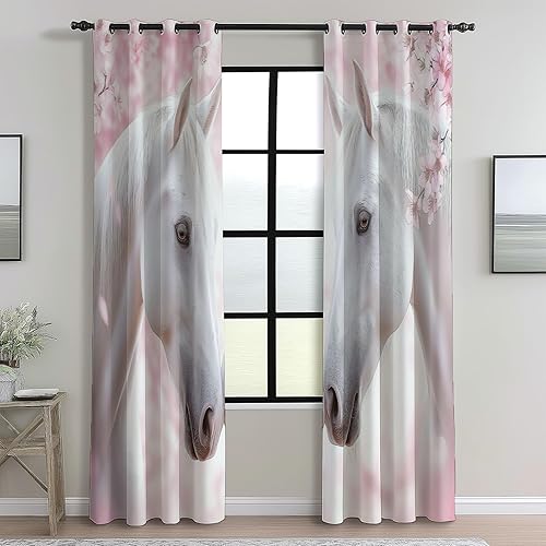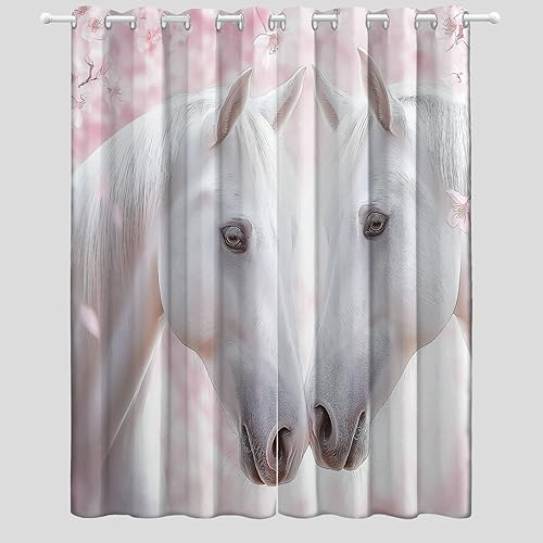 Rideau Occultant 110L X 215H Cm (2 Panneaux) Thermiques Rideaux À Oeillets Élégant Animaux Cheval Blanc Neige pour Chambre À Coucher Salon Cuisine Blanc Bleu Économie D'Énergie