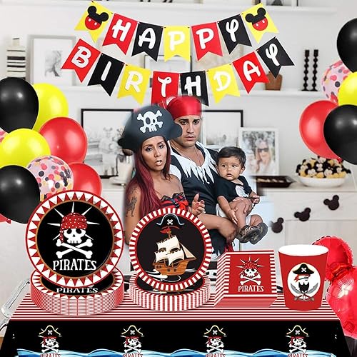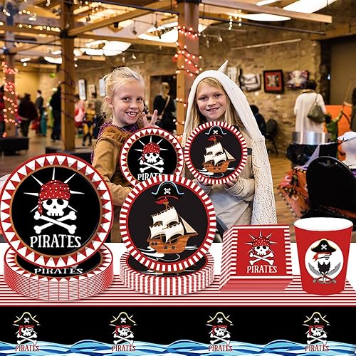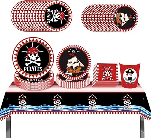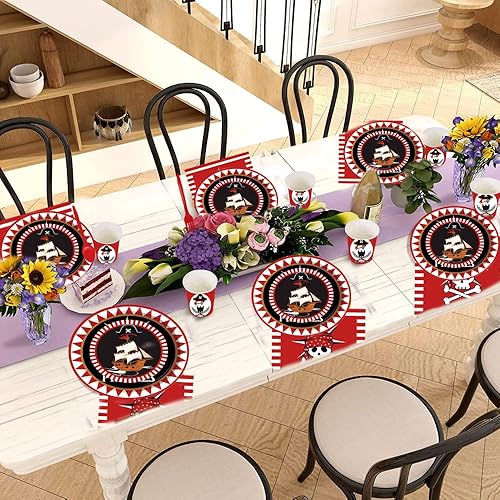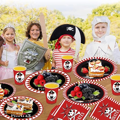 ZOOMPIL Pirate vaisselle , Pirate Fête d'anniversaire Fournitures, kit Vaisselle pour Pirate, Assiettes et Serviettes Pirate Favors, Set de Décoration Thème Pirate 8 Invités