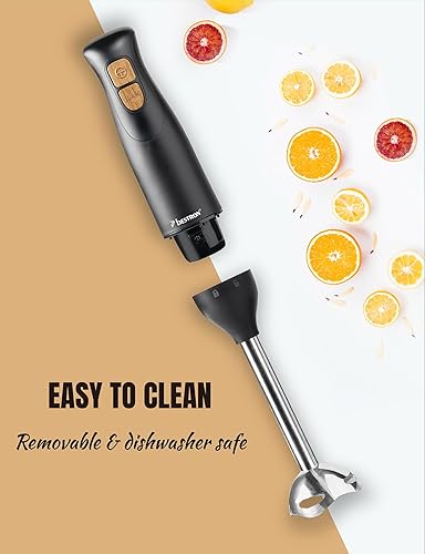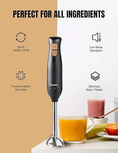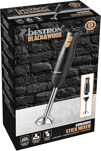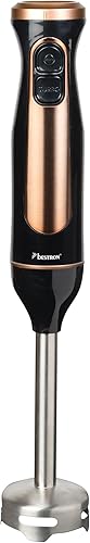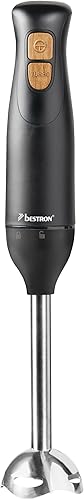 Bestron Mixeur plongeant, Mixer plongeur avec 2 niveaux de vitesse et une poignée ergonomique, incluant une fonction turbo à plus de 14.000 tr/min, tige amovible, couleur: Noir/Rame