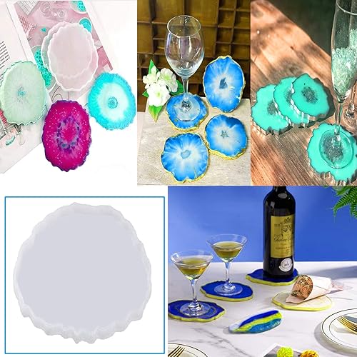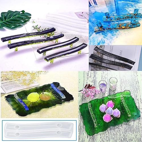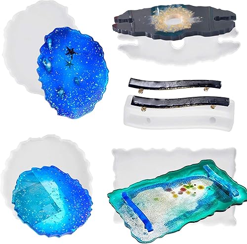 MSDADA 5 Pcs Moules en Résine de Silicone Epoxy, Moules en Résine de Dessous de Verre, Moules en Silicone pour Plateau de, Moules en Résine de Poignée, Moulage Verre à Vin Résine