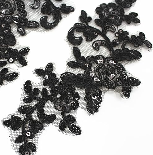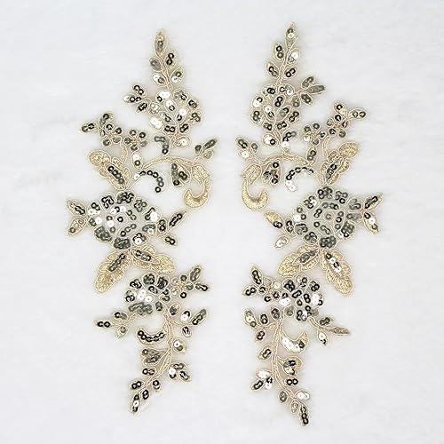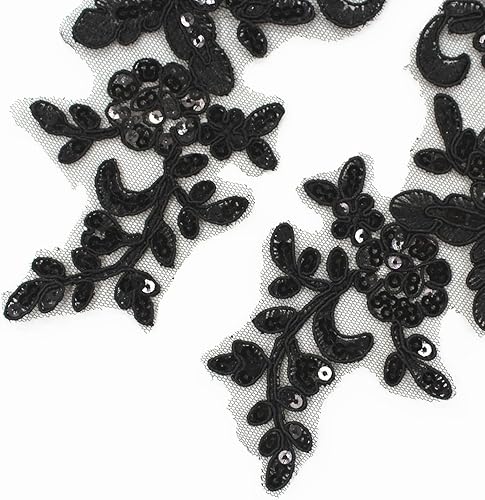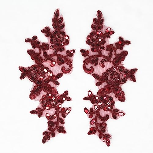 SUNMOVE Paire de broderies en dentelle à paillettes - Applique à coudre - Motif floral - Pour robe de mariée - Bricolage - Bordeaux
